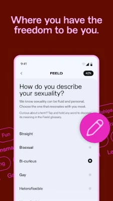 • Pick from a list of 20+ sexualities to personalize your Feeld experience